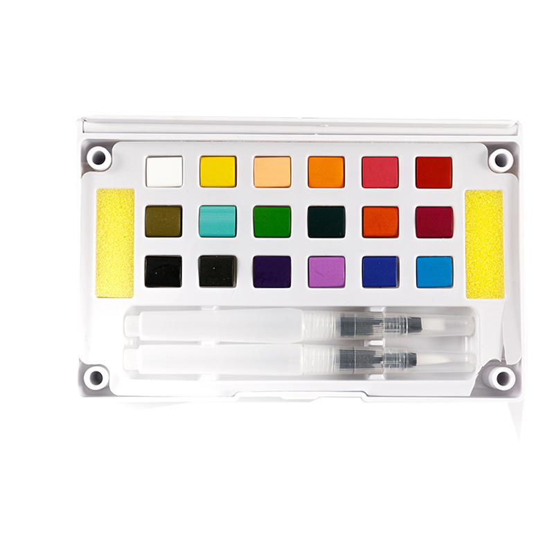 ນີ້ແມ່ນຊຸດເດີນທາງສີນ້ໍາທີ່ມີຄຸນນະພາບສູງ. ມັນປະກອບມີ 18 ສີທົ່ວໄປທີ່ສຸດແລະແປງທີ່ທ່ານຈະຈໍາເປັນຕ້ອງໄດ້ສໍາຫຼວດຄວາມຄິດສ້າງສັນຂອງທ່ານໃນສີນ້ໍາ! ຊຸດນີ້ມາພ້ອມກັບ palette ແບບພົກພາເພື່ອການປະສົມທີ່ງ່າຍ, ເຊັ່ນດຽວກັນກັບປາກກາແປງຂອງຈິດຕະນາການສໍາລັບການກໍານົດແລະສ້າງພື້ນທີ່ທີ່ຊັດເຈນຫຼາຍຂອງສີ. ແລະ, ແນ່ນອນ, ມີສອງແປງສີສໍາລັບການ dipping ເຂົ້າໄປໃນສີຂອງທ່ານແລະປະສົມໃສ່ palette ໄດ້